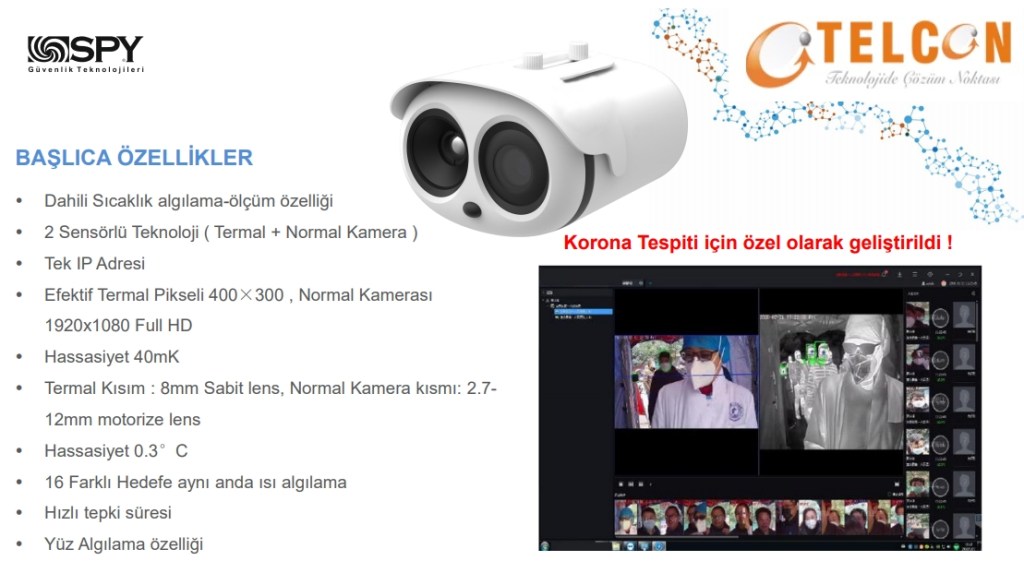 Global salgın kapsamında (Covid-19) resmi olarak pandemi statüsüne eriştiği günümüzde halkın tedirgin olması ve ateş ölçer giriş kontrol cihazlarına yöneldiği daha da güvenli olma isteğini ürünlerimizle rahatlıkla karşılamayı hedefliyoruz. Termal kameralar coronavirüsü tespit edemez ancak yüksek vücut sıcaklığını görüntüleyebilir.